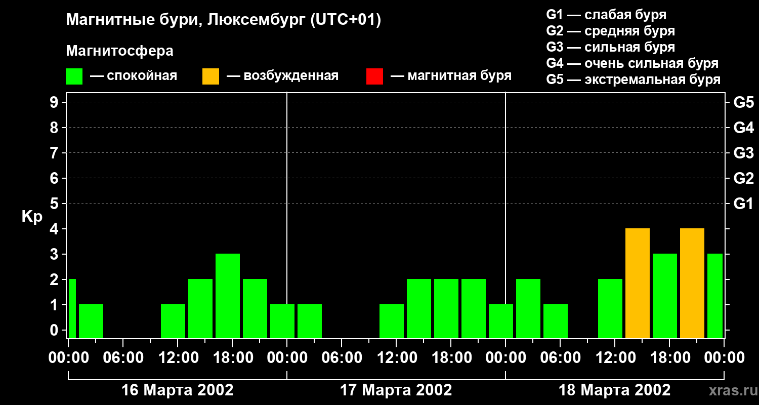 Магнитные бури в Люксембурге — 18 марта 2002 года