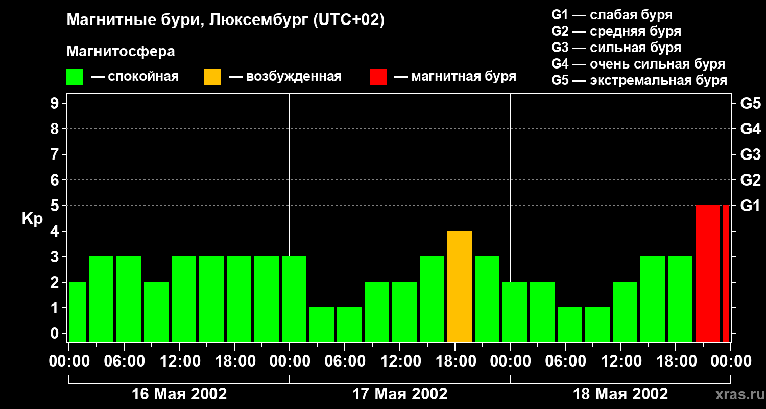 Магнитные бури в Люксембурге — 18 мая 2002 года
