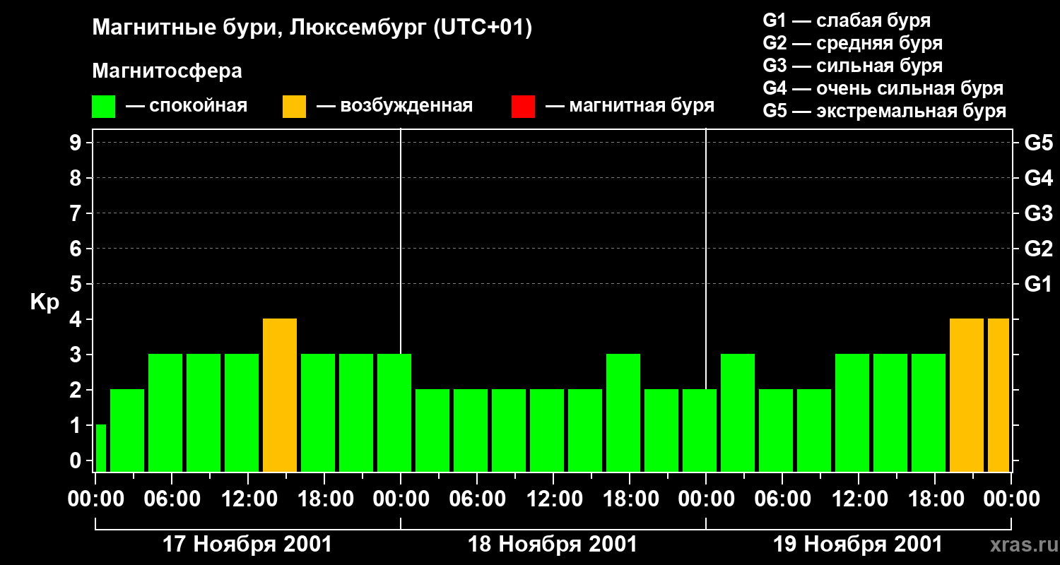 Магнитные бури в Люксембурге — 19 ноября 2001 года