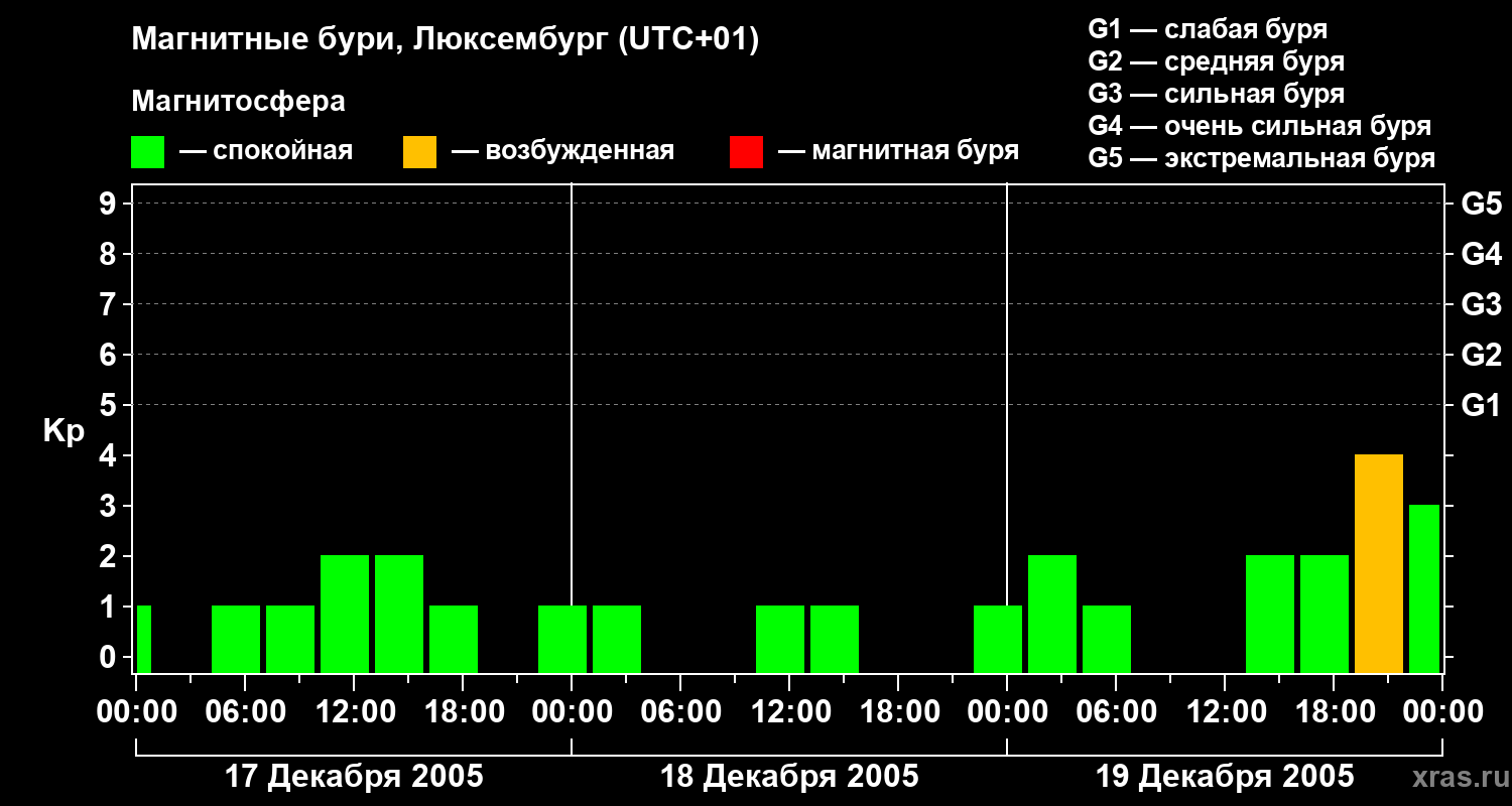 Магнитные бури в Люксембурге — 19 декабря 2005 года