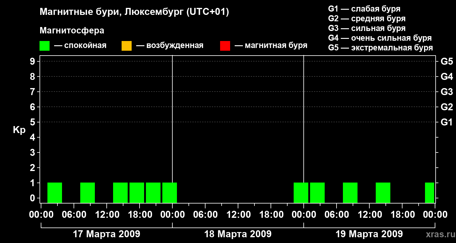 Магнитные бури в Люксембурге — 19 марта 2009 года