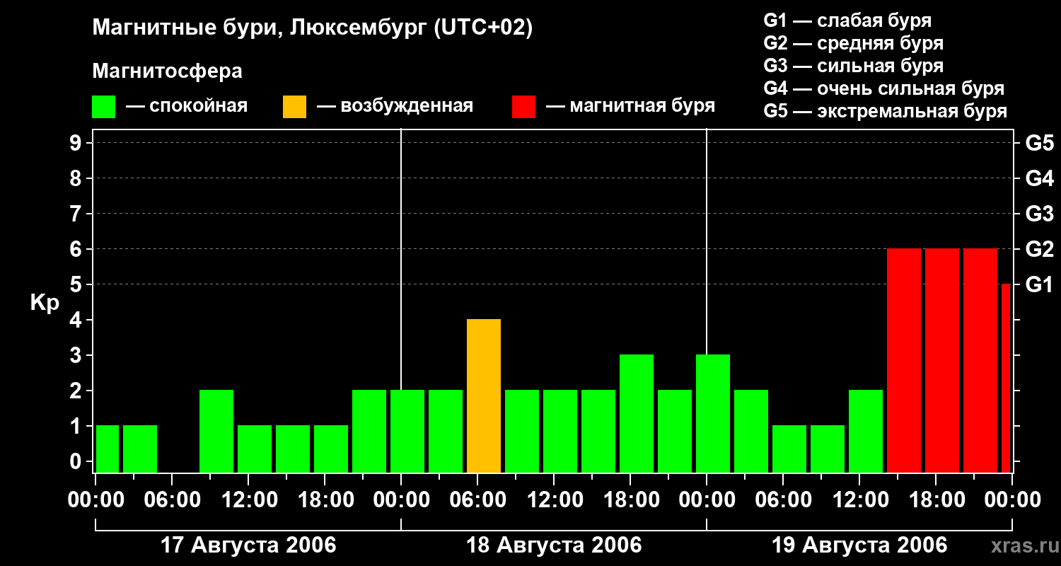 Магнитные бури в Люксембурге — 19 августа 2006 года