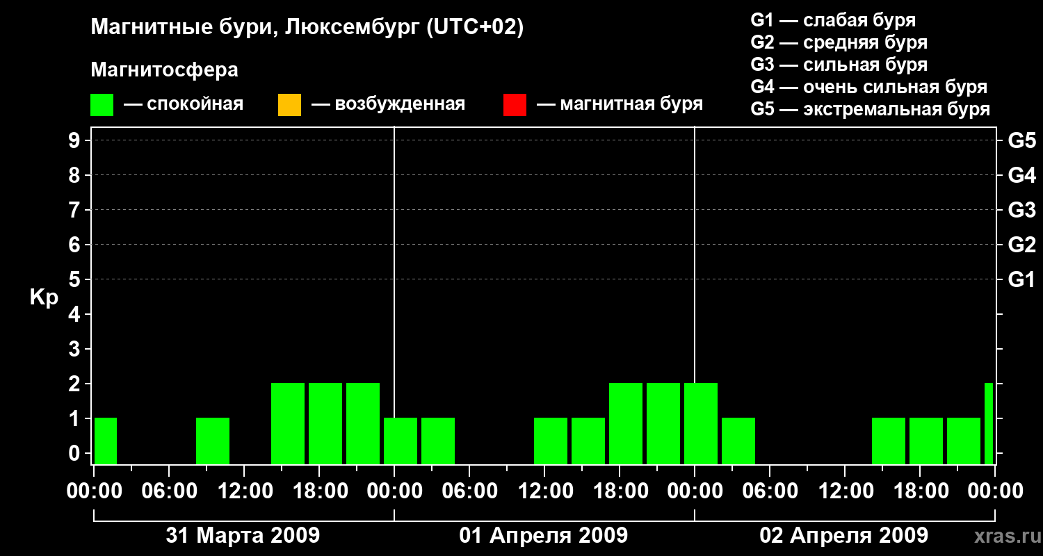 Магнитные бури в Люксембурге 2 апреля 2009 года