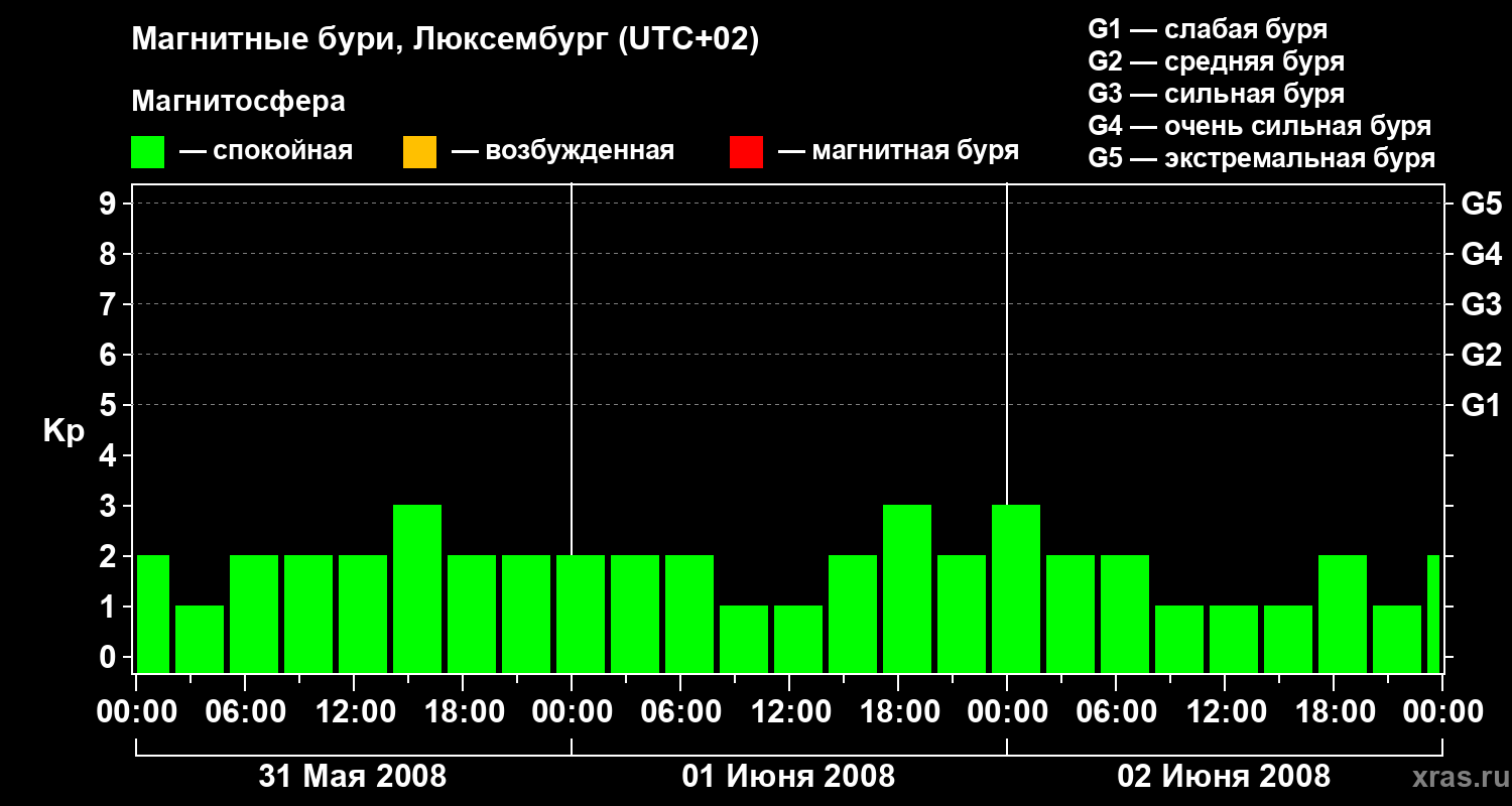Магнитные бури в Люксембурге 2 июня 2008 года