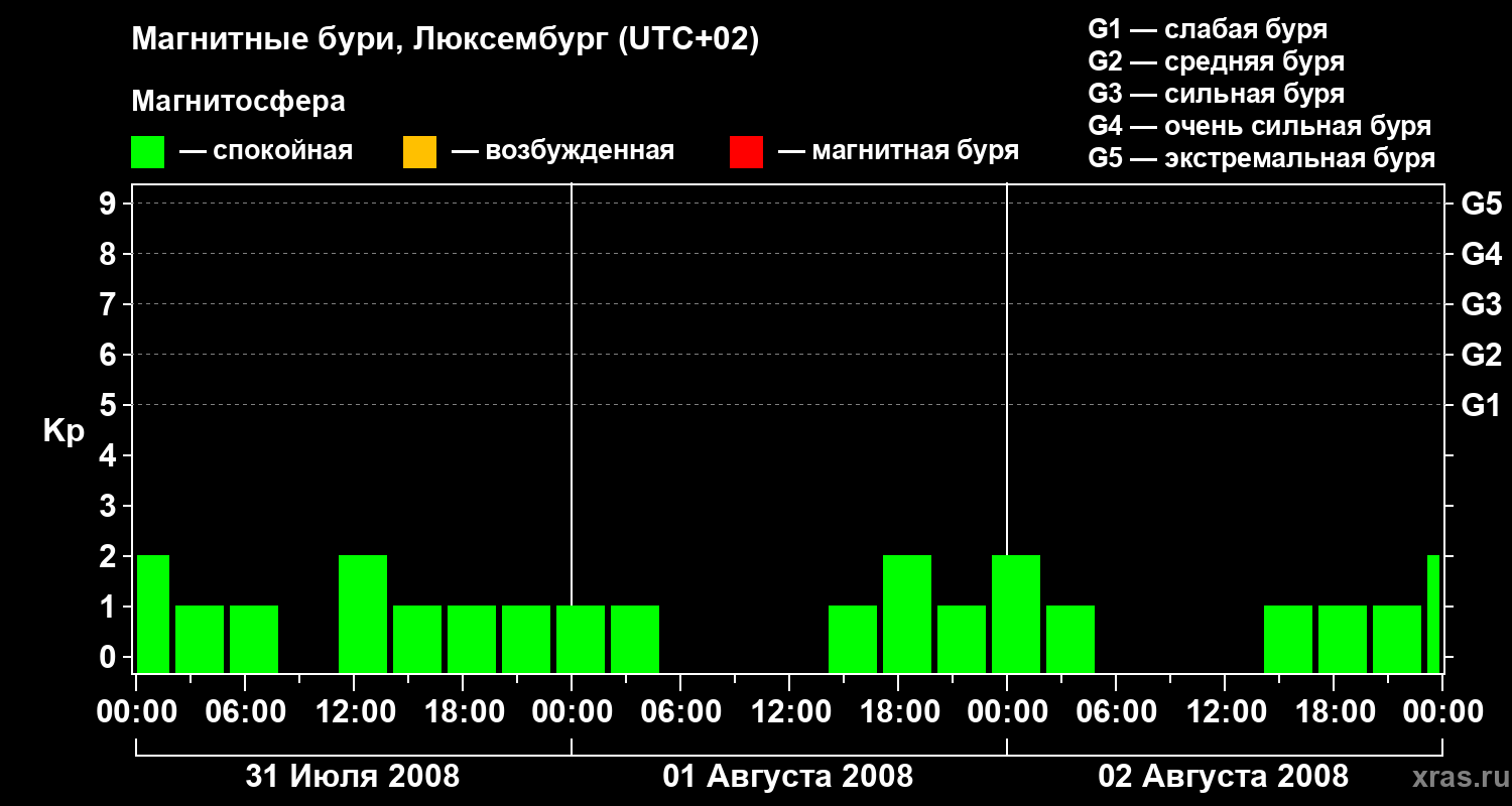 Магнитные бури в Люксембурге — 2 августа 2008 года