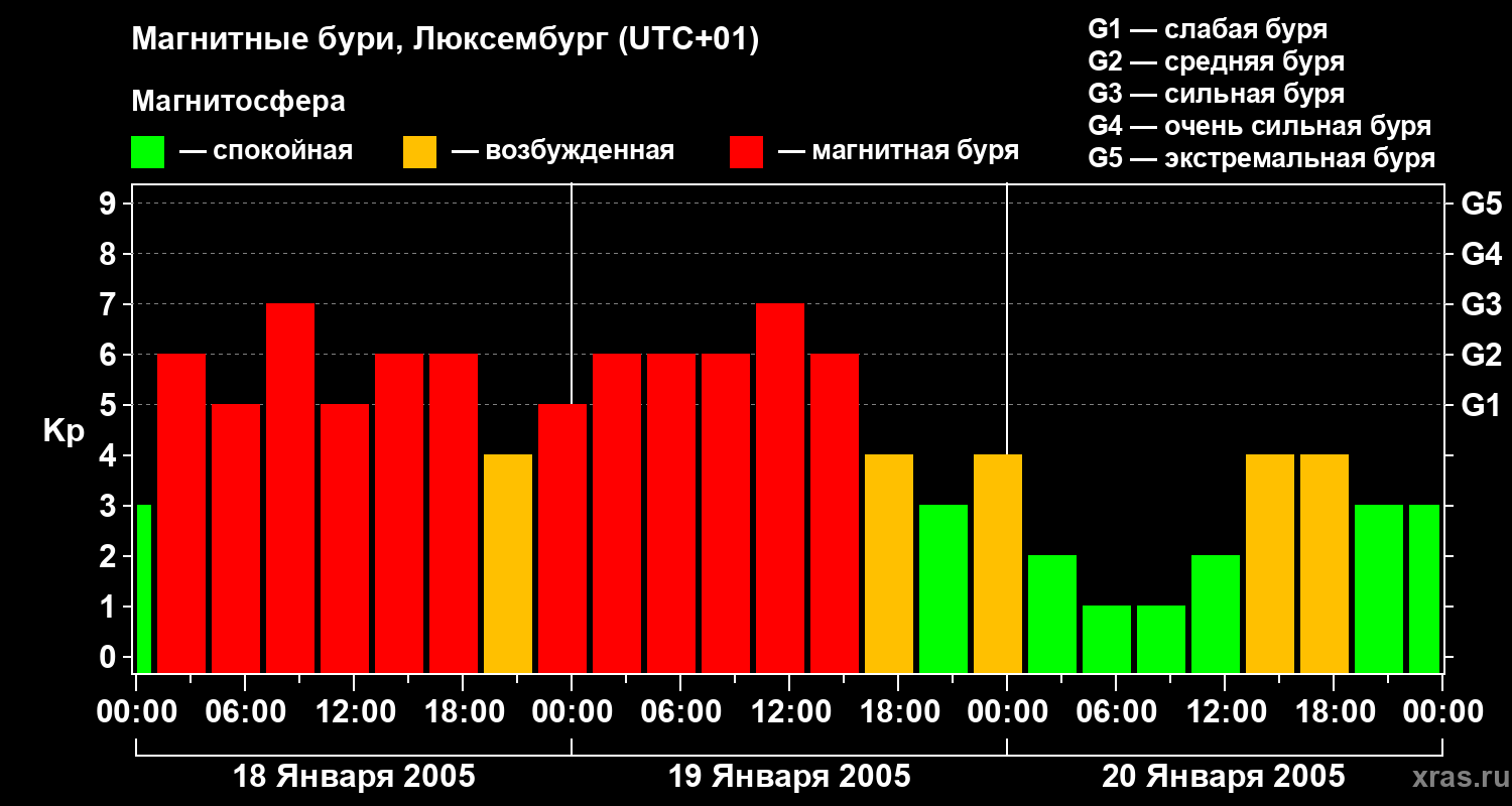 Магнитные бури в Люксембурге — 20 января 2005 года