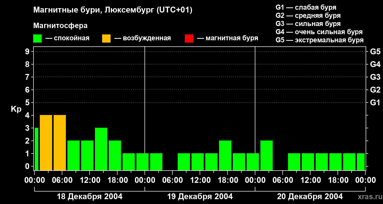 Магнитные бури в Люксембурге — 20 декабря 2004 года