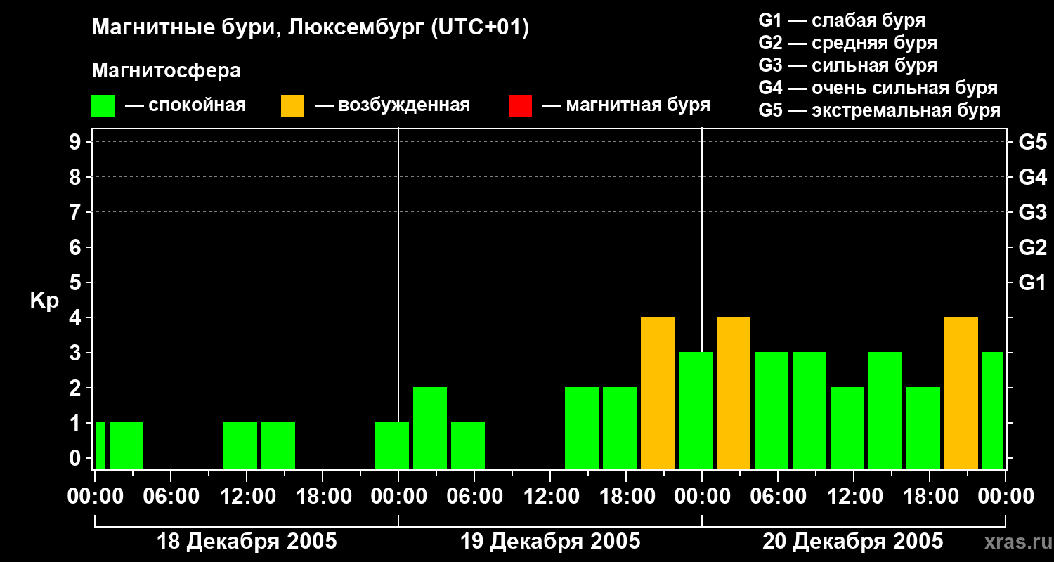 Магнитные бури в Люксембурге — 20 декабря 2005 года