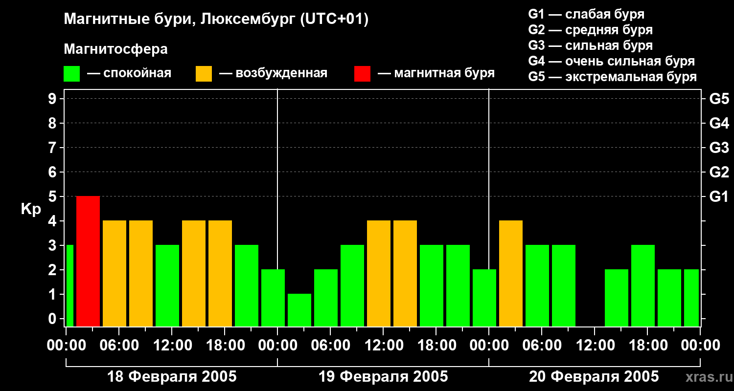 Магнитные бури в Люксембурге — 20 февраля 2005 года