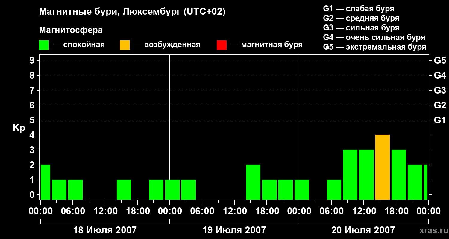 Магнитные бури в Люксембурге — 20 июля 2007 года
