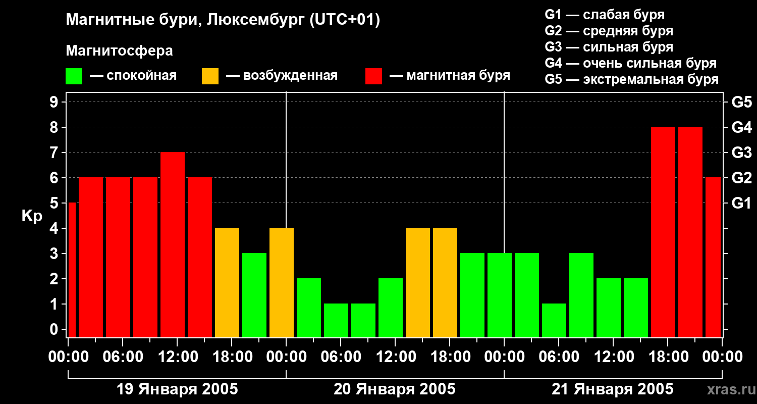 Магнитные бури в Люксембурге — 21 января 2005 года