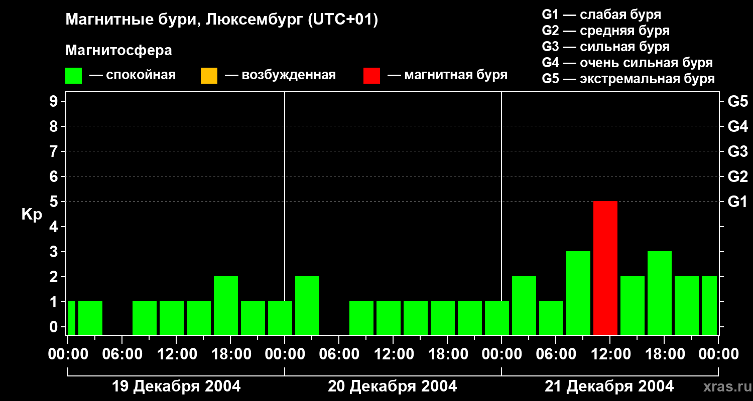 Магнитные бури в Люксембурге — 21 декабря 2004 года