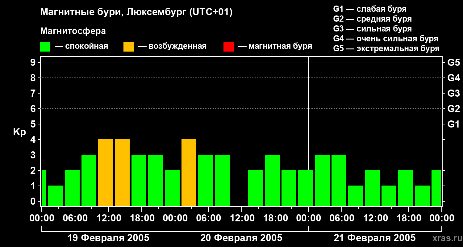 Магнитные бури в Люксембурге — 21 февраля 2005 года
