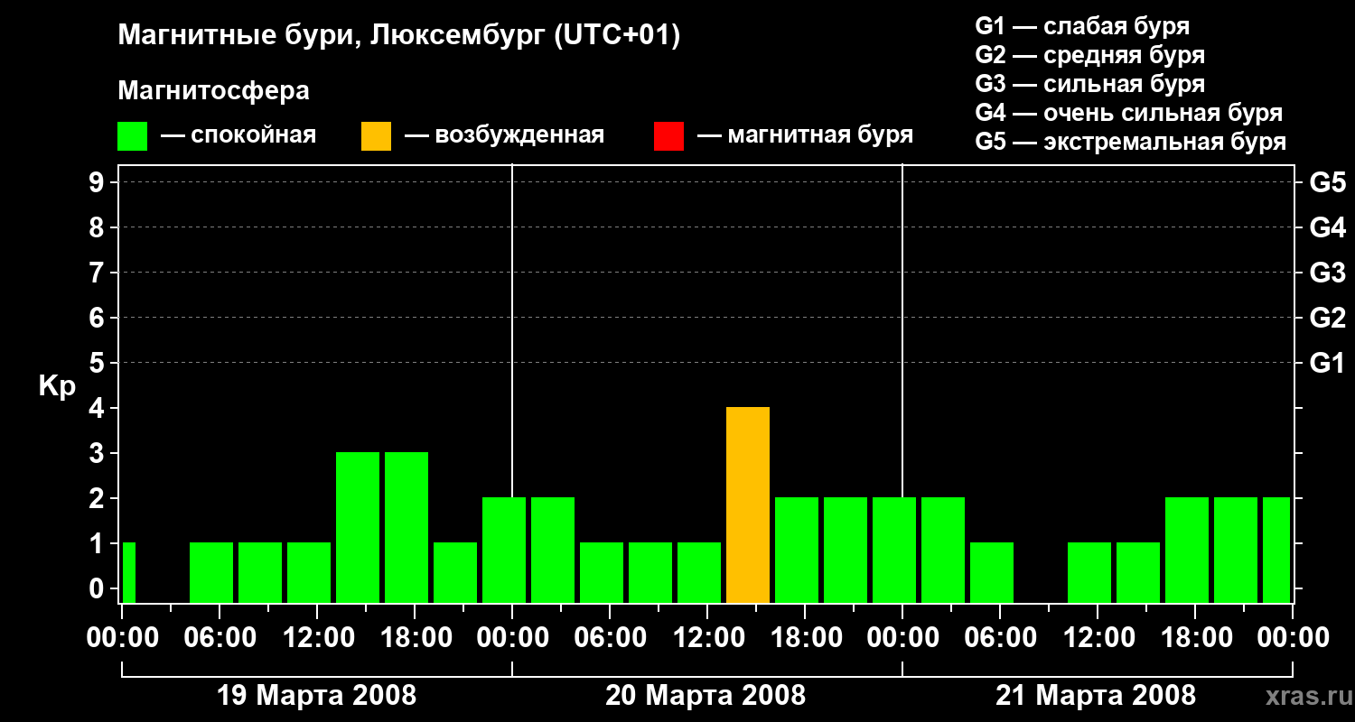Магнитные бури в Люксембурге — 21 марта 2008 года