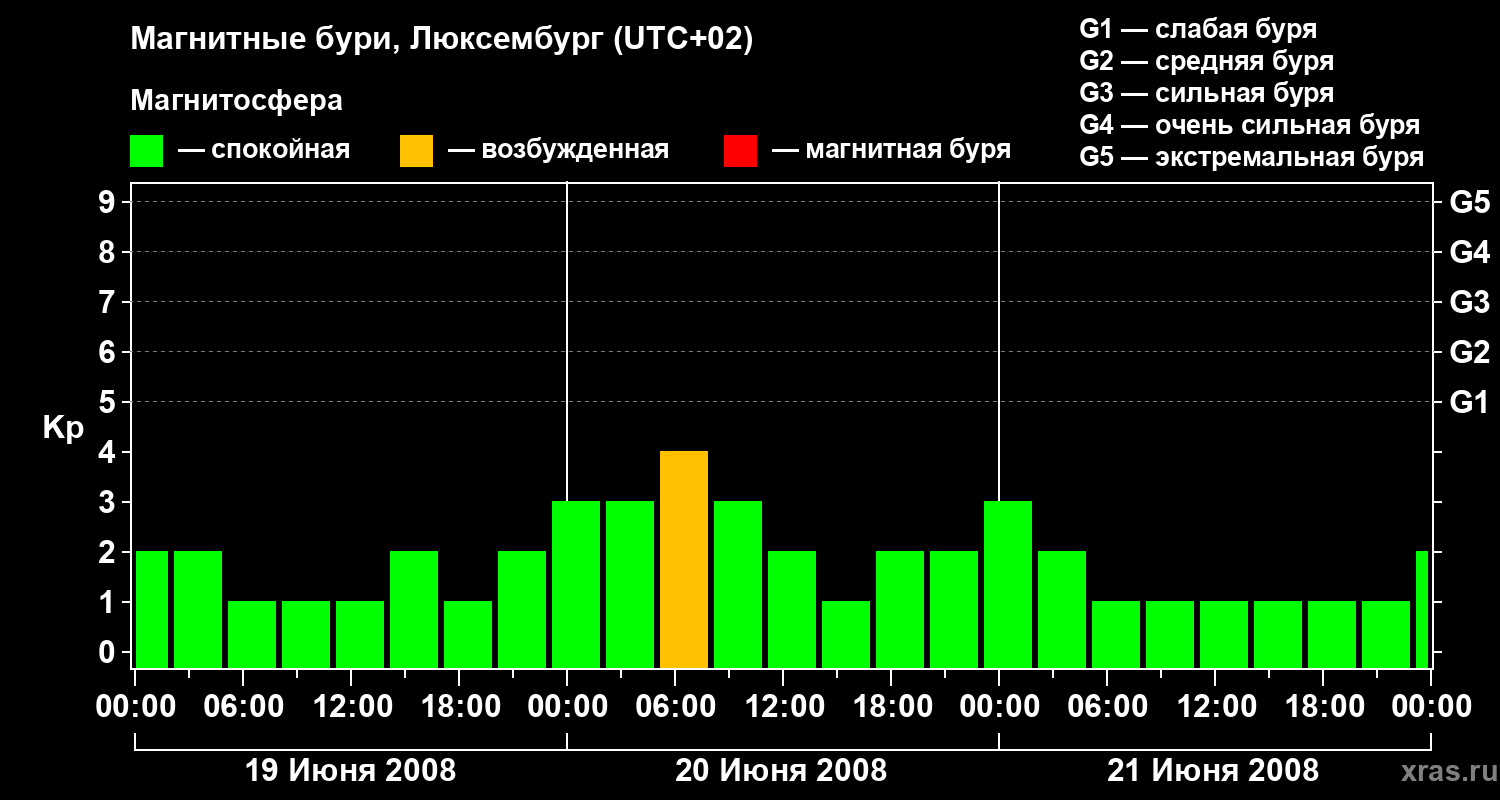 Магнитные бури в Люксембурге — 21 июня 2008 года