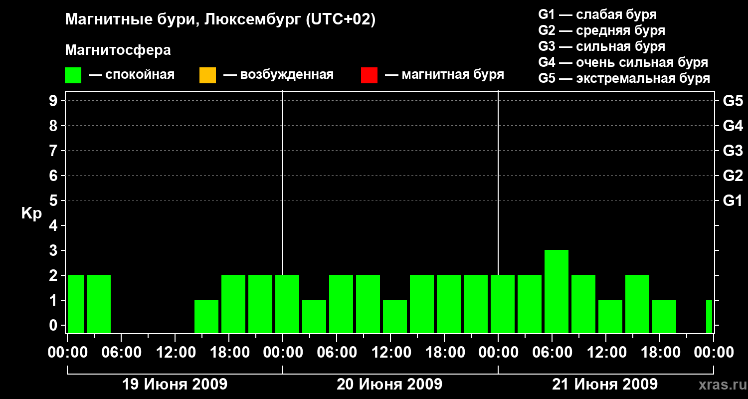 Магнитные бури в Люксембурге — 21 июня 2009 года