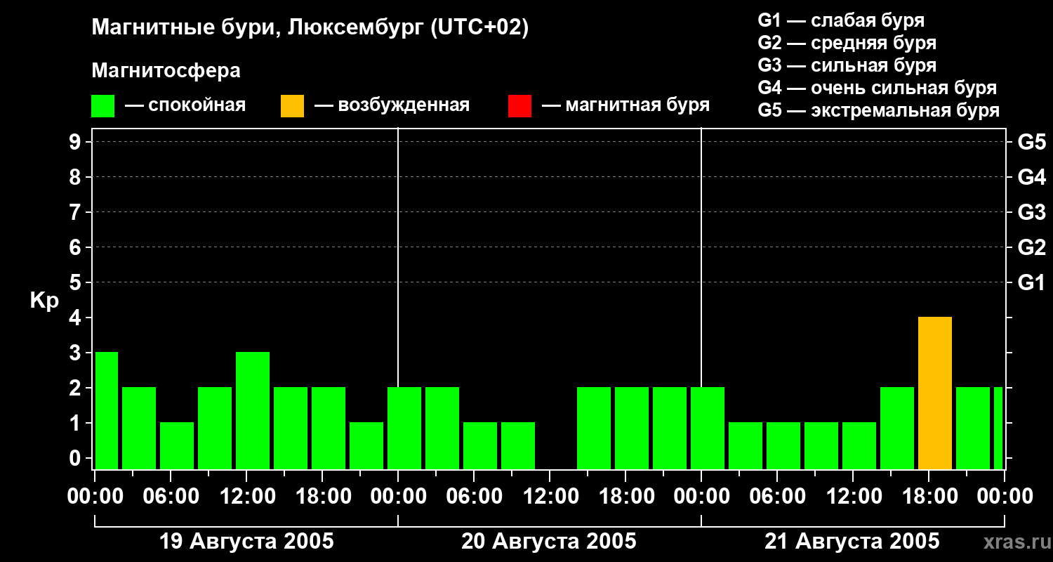 Магнитные бури в Люксембурге — 21 августа 2005 года