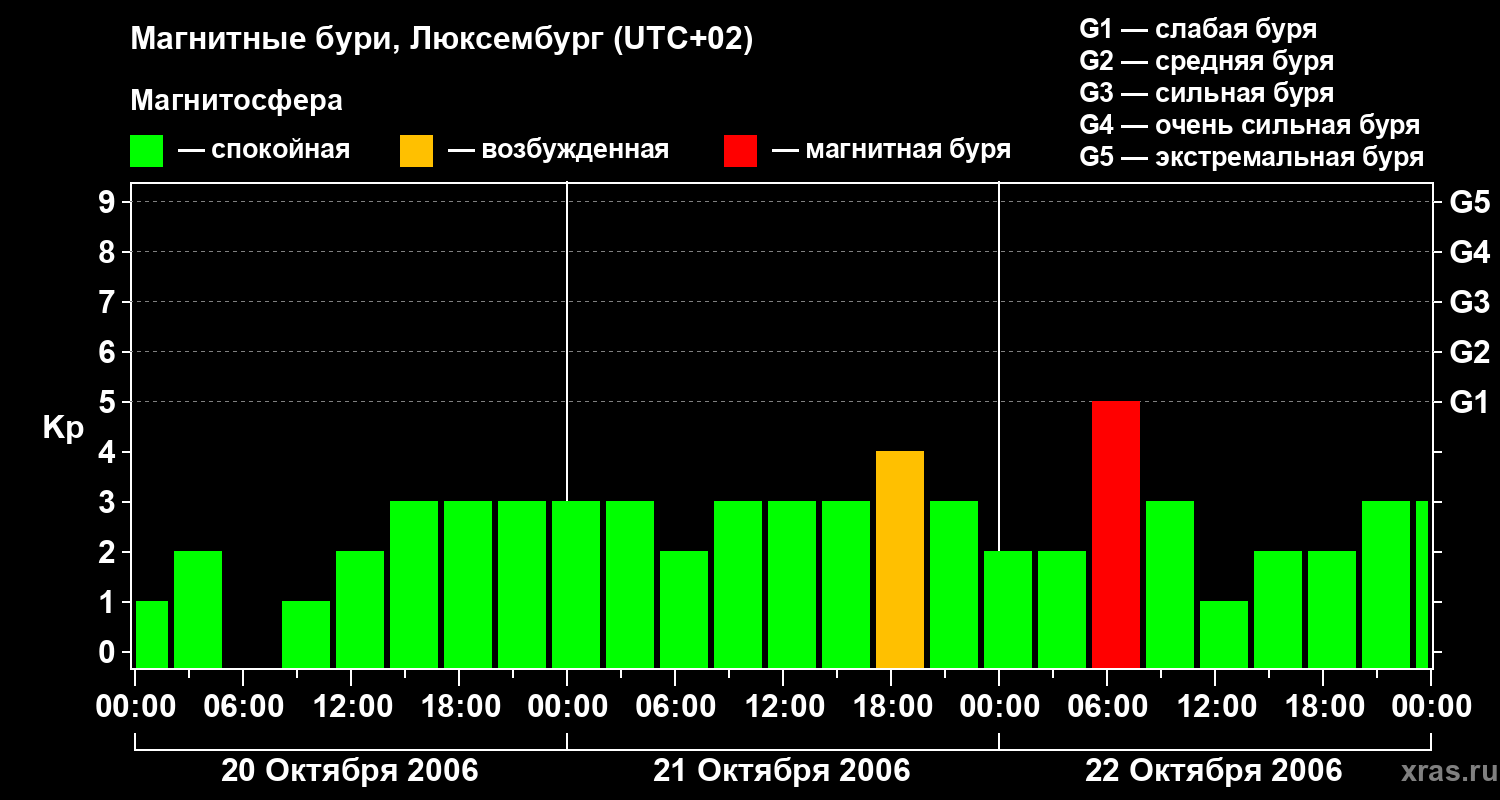 Магнитные бури в Люксембурге 22 октября 2006 года