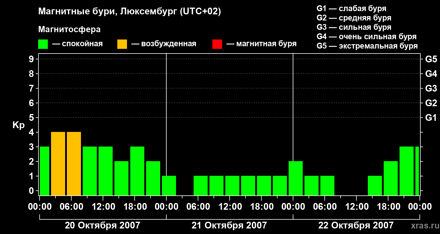 Магнитные бури в Люксембурге 22 октября 2007 года