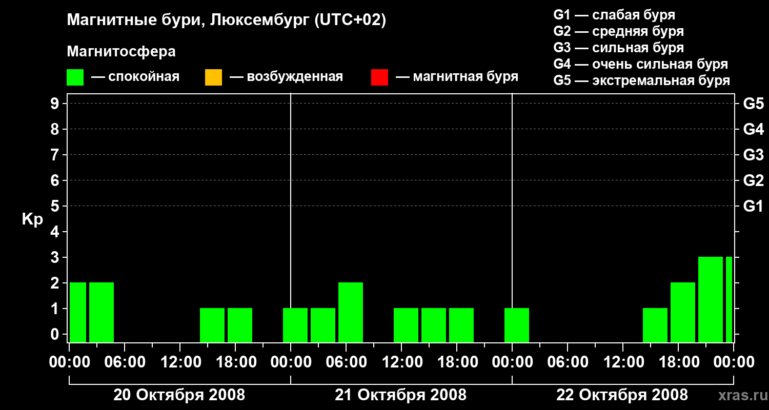 Магнитные бури в Люксембурге — 22 октября 2008 года