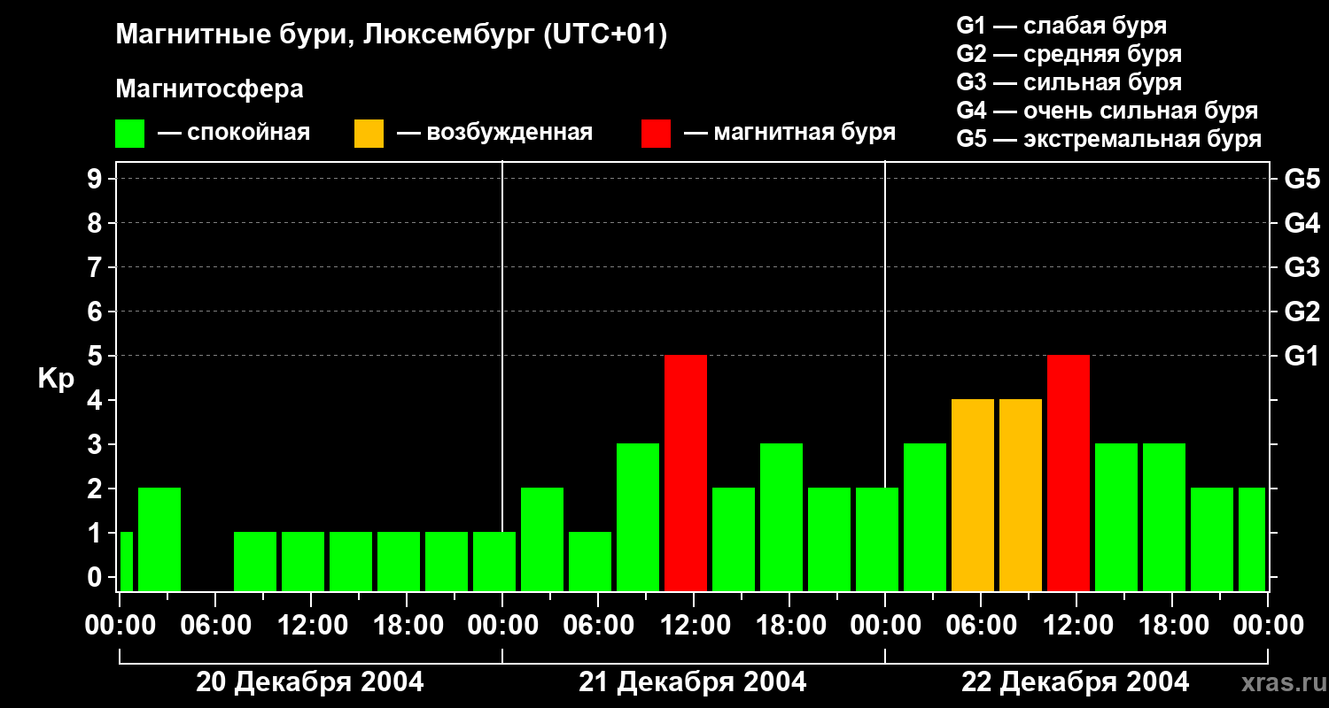 Магнитные бури в Люксембурге — 22 декабря 2004 года