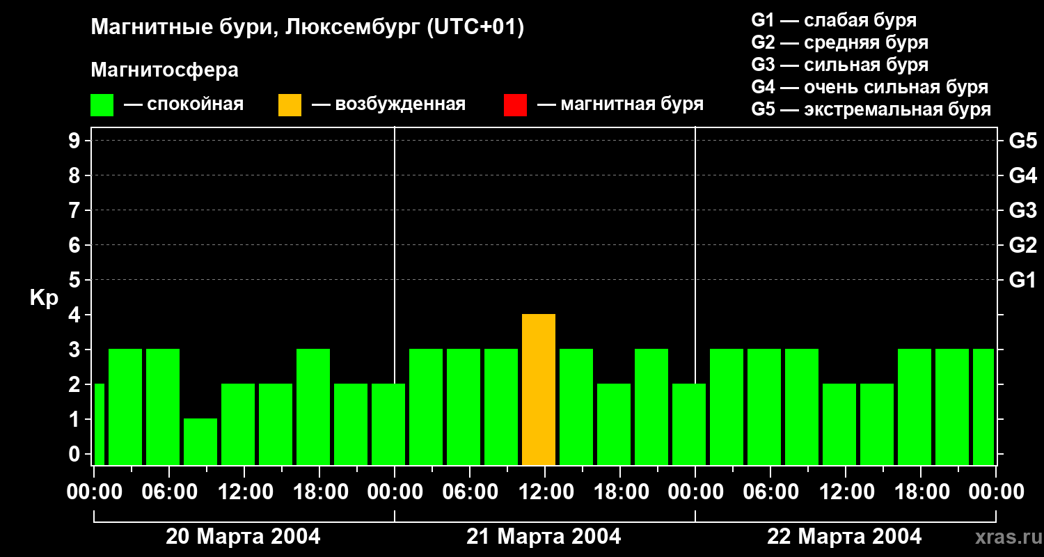 Магнитные бури в Люксембурге — 22 марта 2004 года