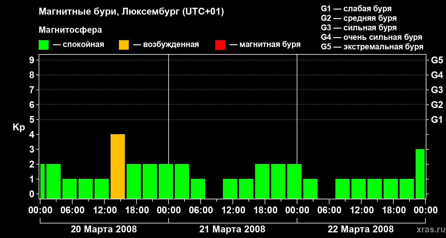 Магнитные бури в Люксембурге — 22 марта 2008 года