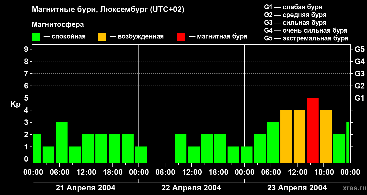 Магнитные бури в Люксембурге — 23 апреля 2004 года
