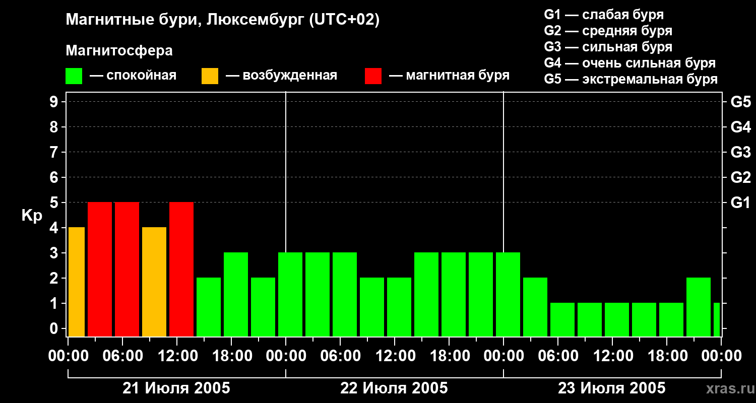 Магнитные бури в Люксембурге — 23 июля 2005 года