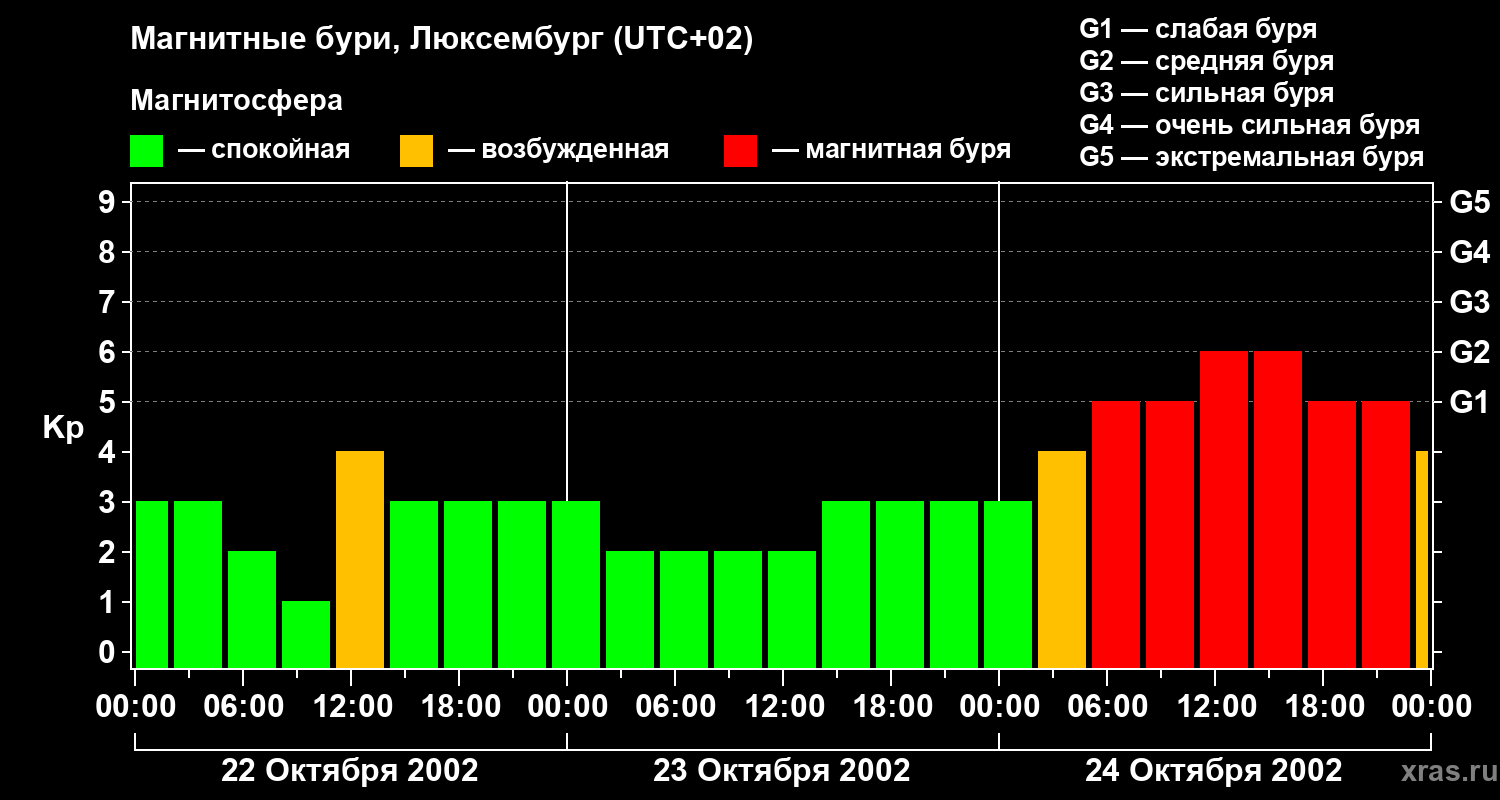 Магнитные бури в Люксембурге — 24 октября 2002 года