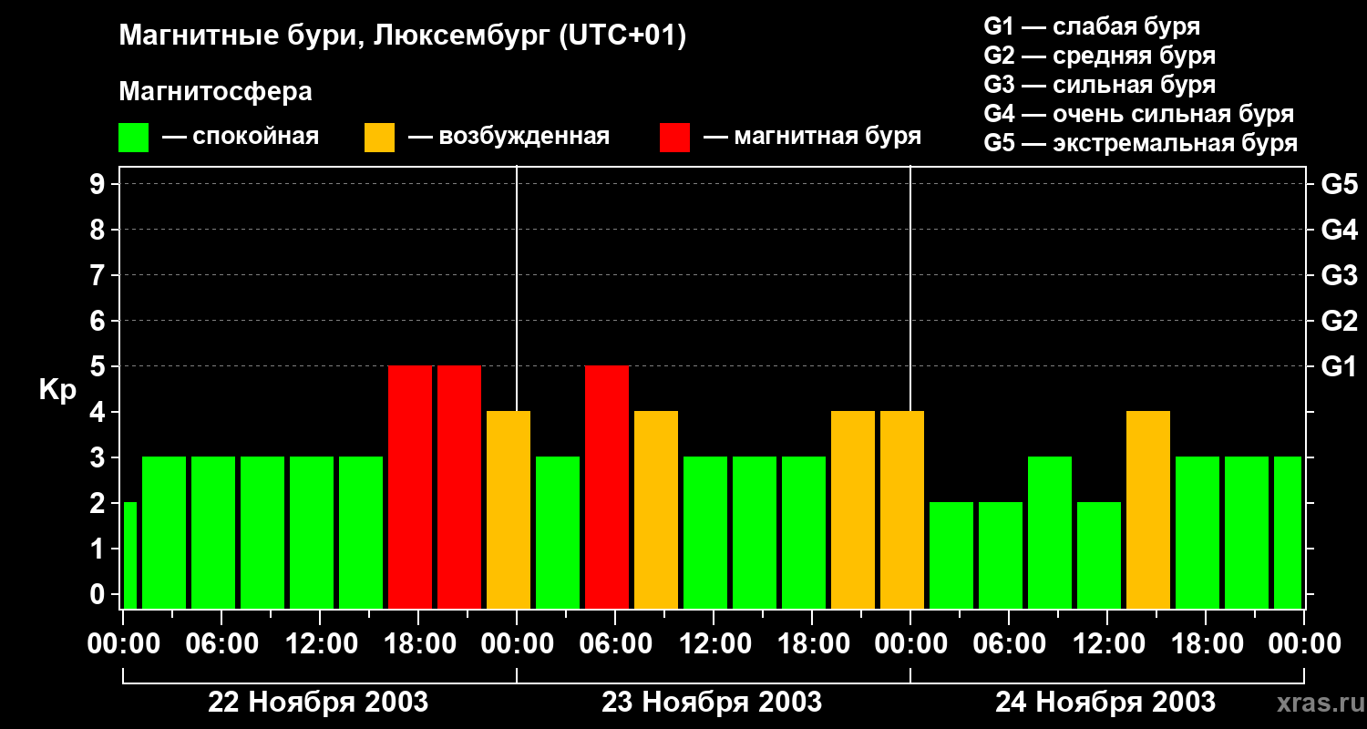 Магнитные бури в Люксембурге — 24 ноября 2003 года