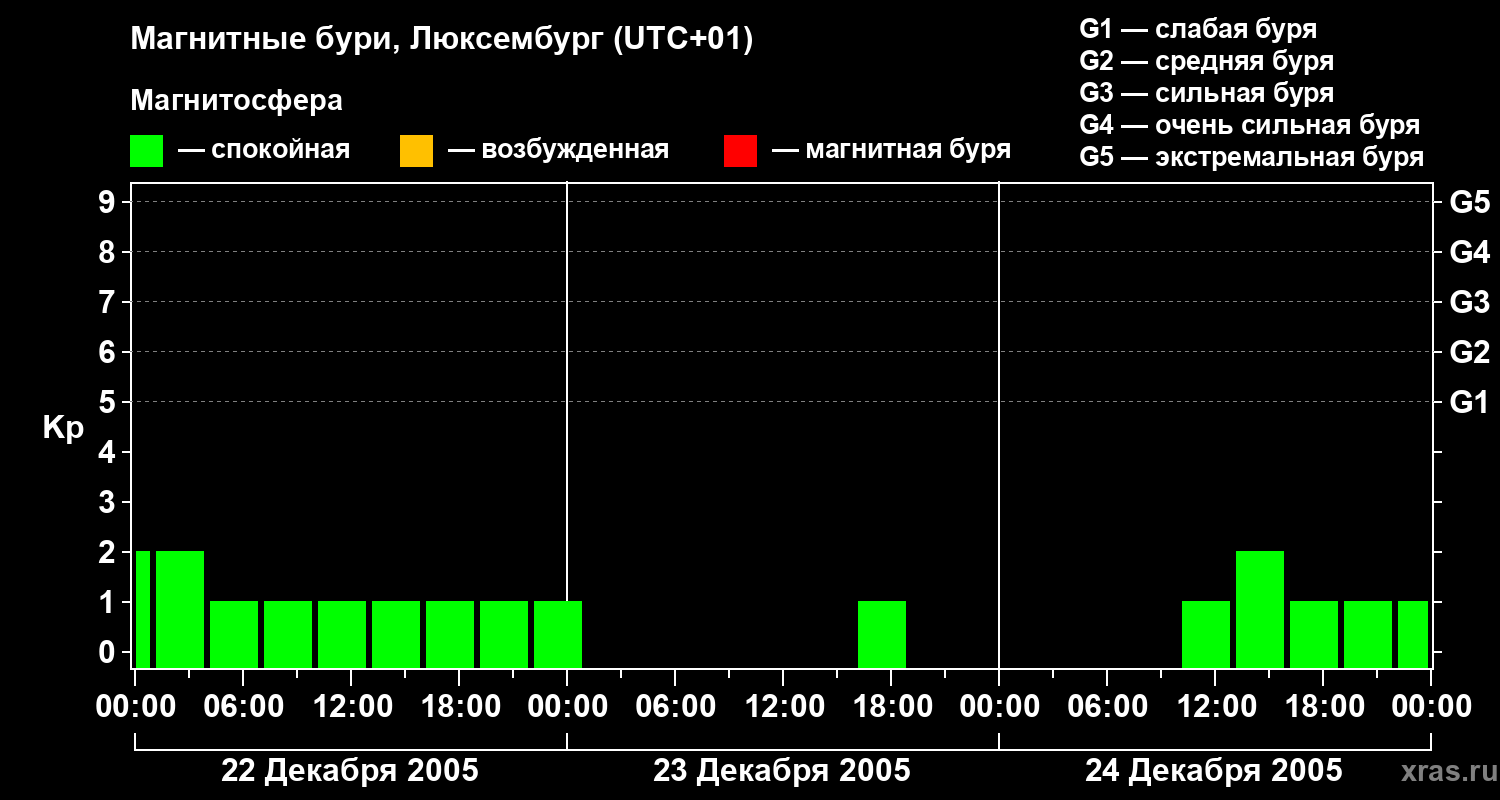 Магнитные бури в Люксембурге — 24 декабря 2005 года