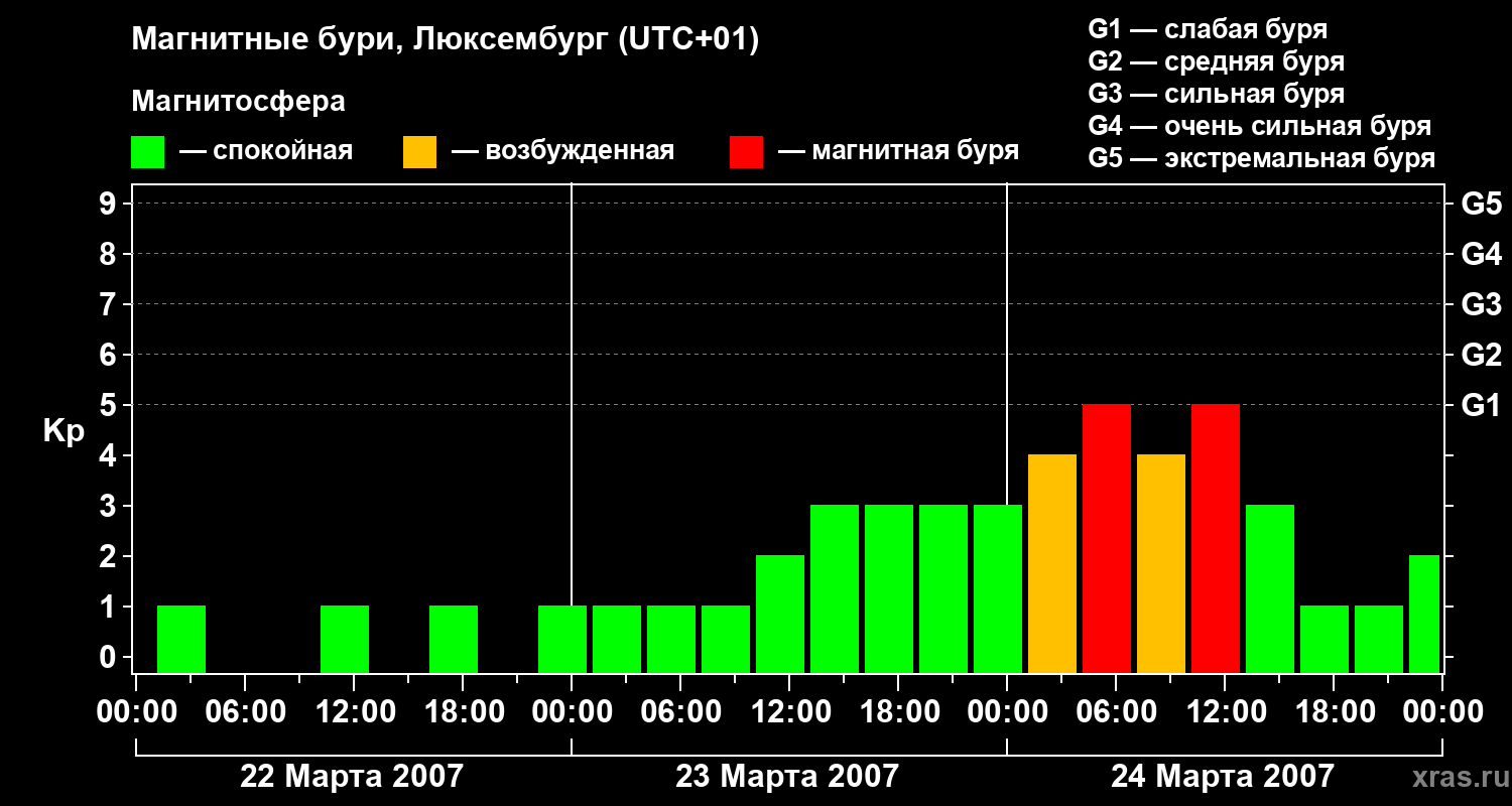 Магнитные бури в Люксембурге — 24 марта 2007 года