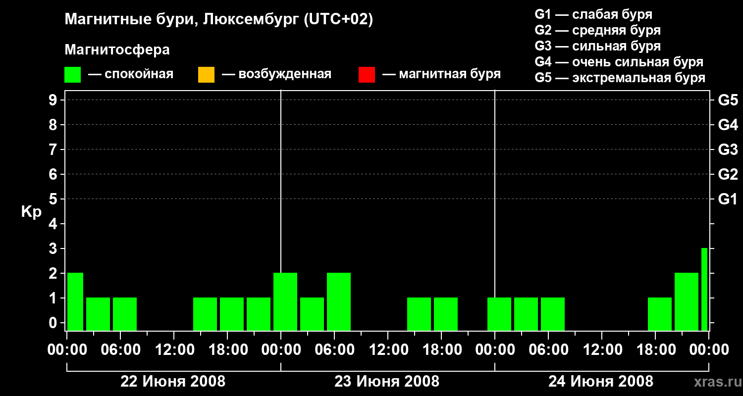 Магнитные бури в Люксембурге — 24 июня 2008 года