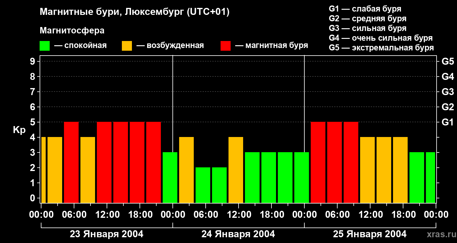 Магнитные бури в Люксембурге — 25 января 2004 года