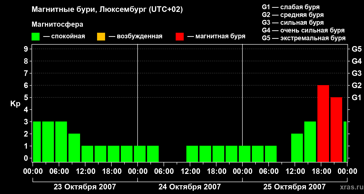 Магнитные бури в Люксембурге — 25 октября 2007 года