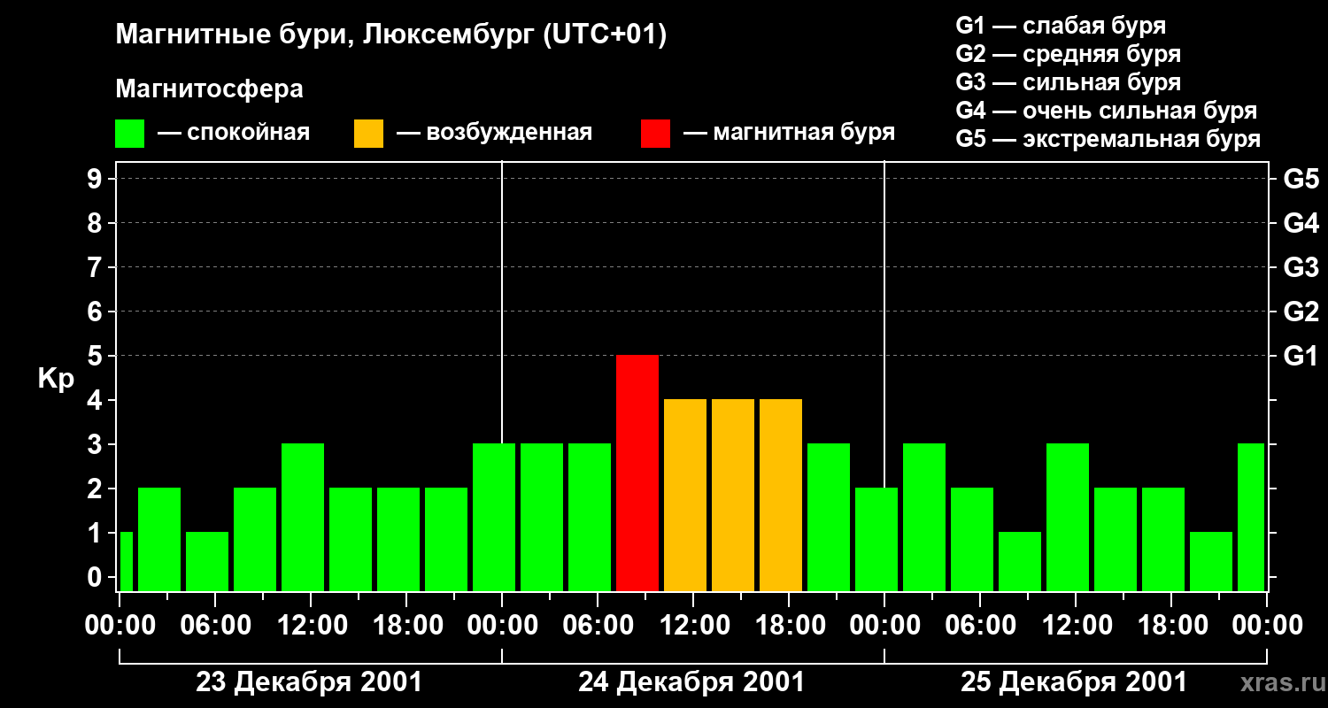 Магнитные бури в Люксембурге — 25 декабря 2001 года
