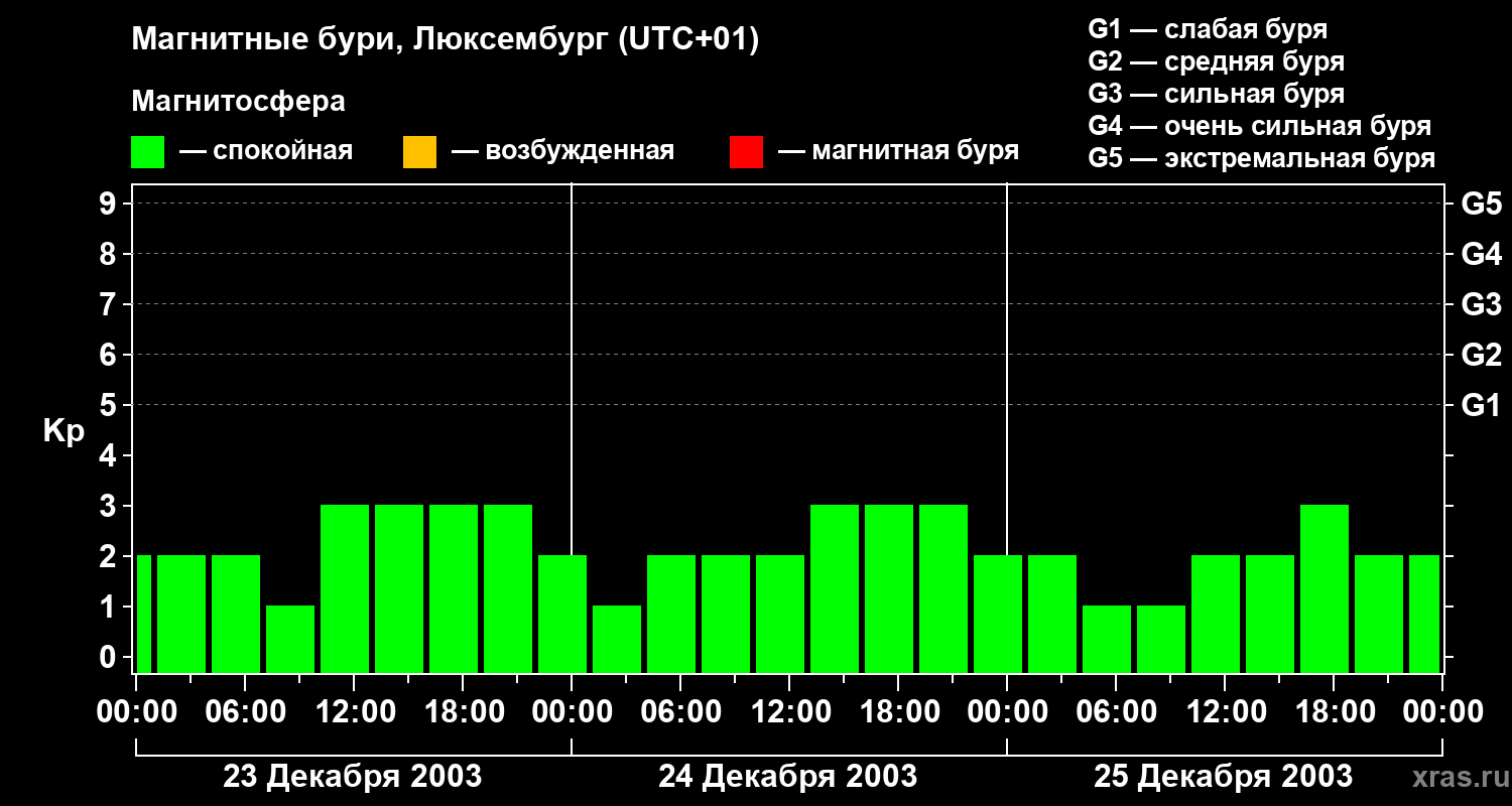 Магнитные бури в Люксембурге — 25 декабря 2003 года
