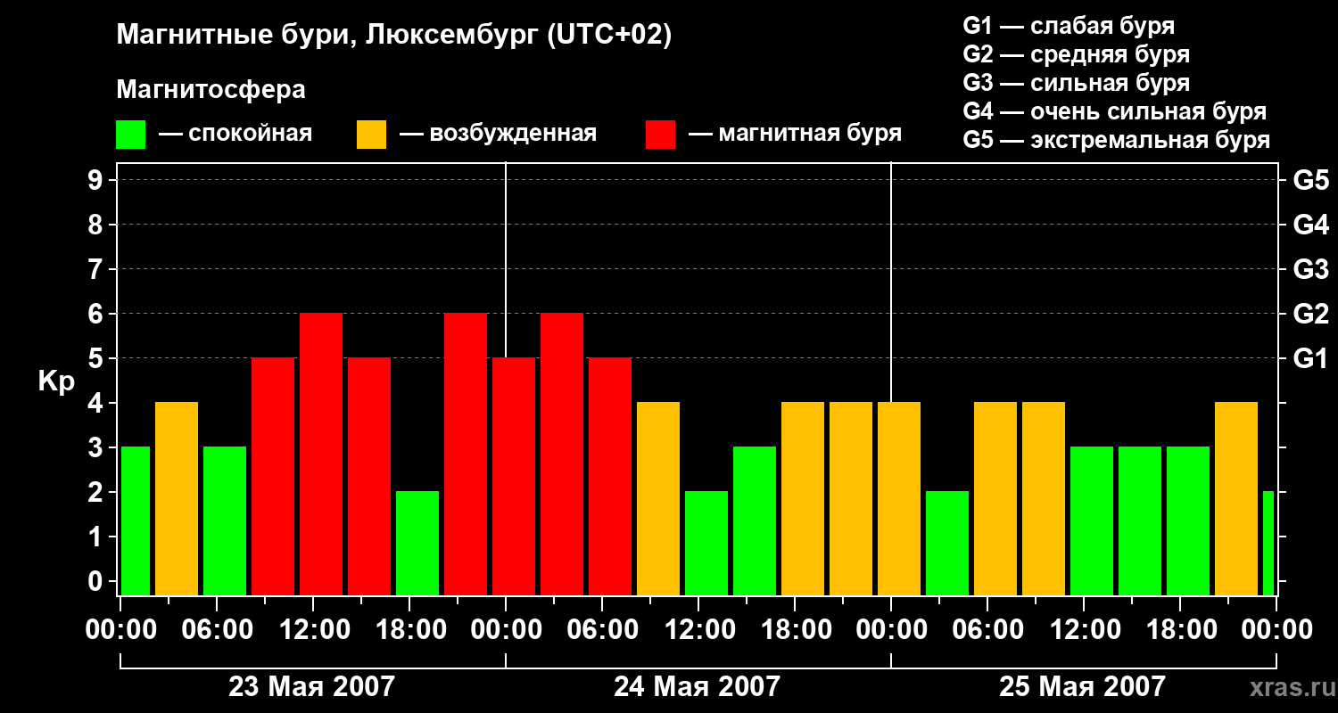 Магнитные бури в Люксембурге — 25 мая 2007 года