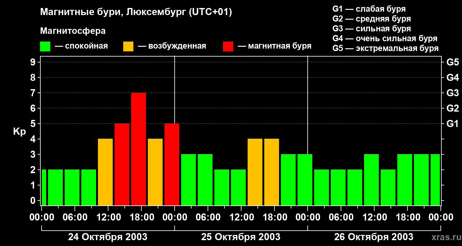 Магнитные бури в Люксембурге — 26 октября 2003 года
