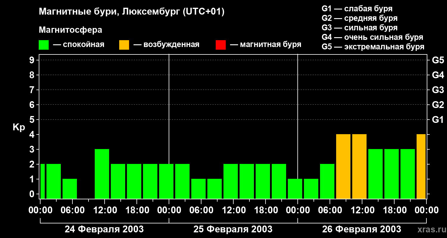 Магнитные бури в Люксембурге — 26 февраля 2003 года