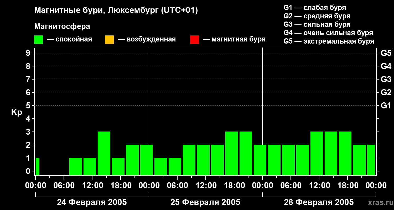 Магнитные бури в Люксембурге 26 февраля 2005 года