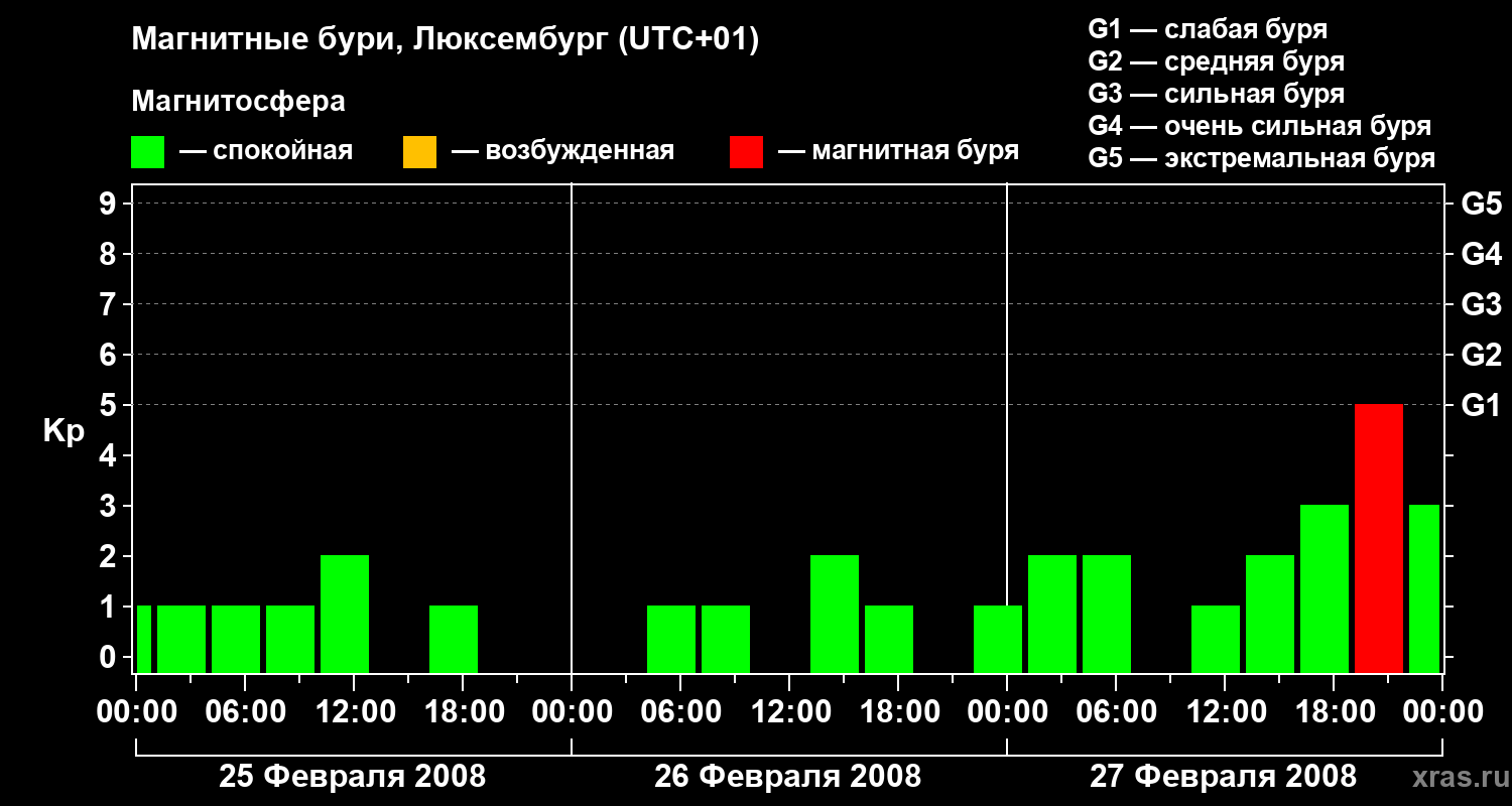 Магнитные бури в Люксембурге — 27 февраля 2008 года