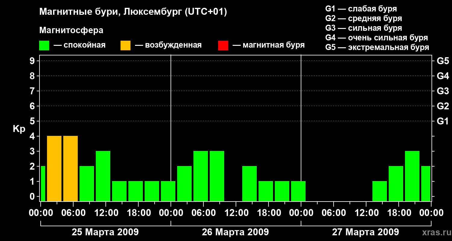 Магнитные бури в Люксембурге 27 марта 2009 года