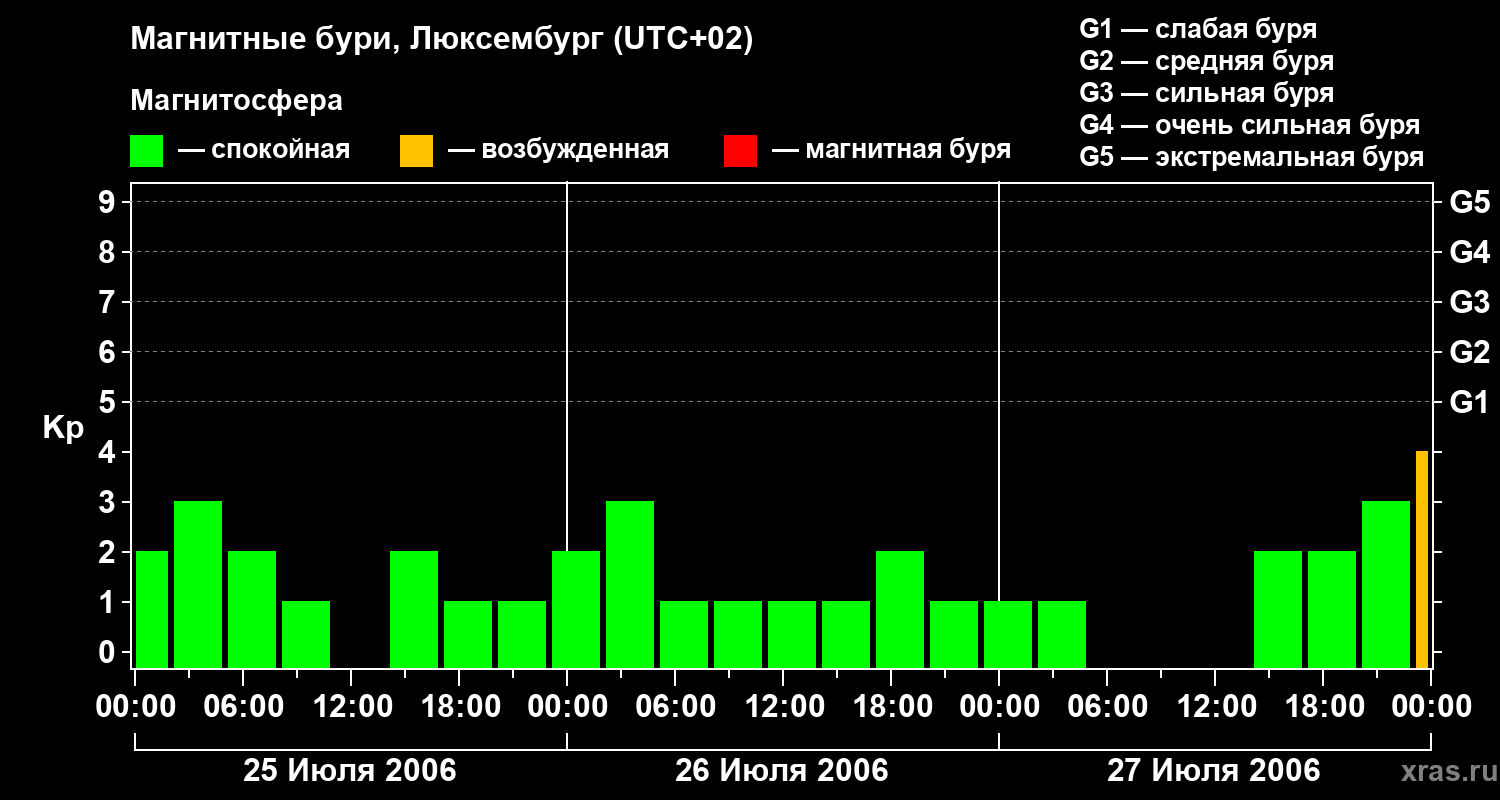 Магнитные бури в Люксембурге — 27 июля 2006 года