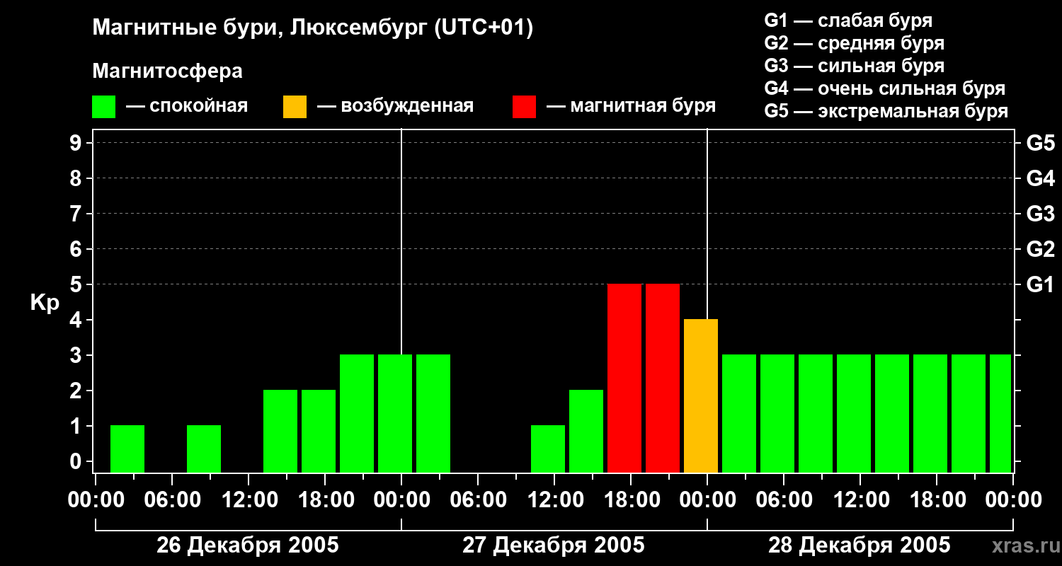 Магнитные бури в Люксембурге — 28 декабря 2005 года