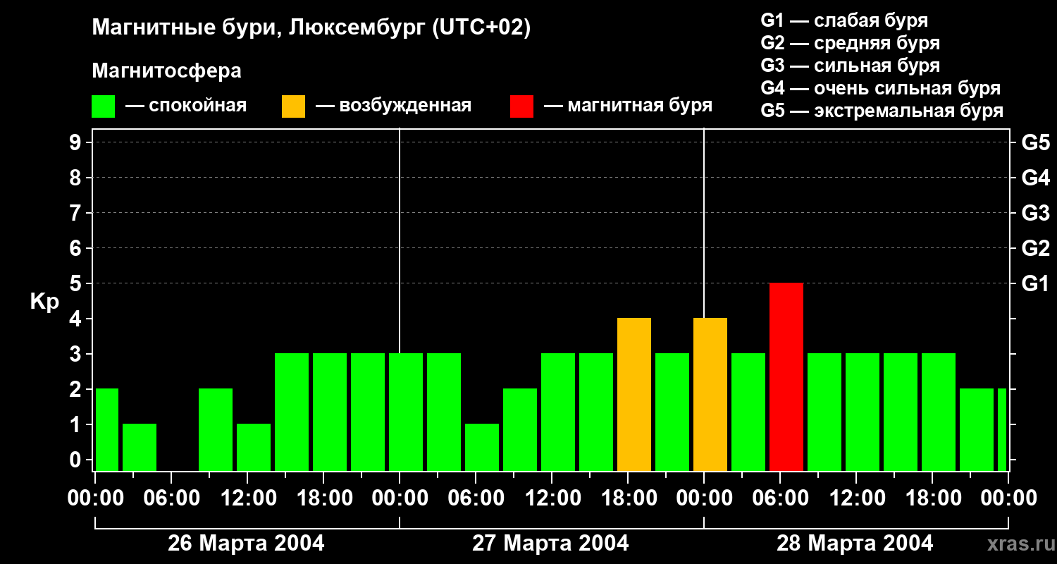 Магнитные бури в Люксембурге — 28 марта 2004 года
