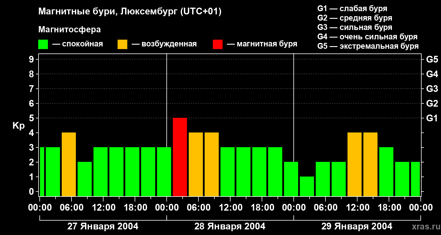 Магнитные бури в Люксембурге — 29 января 2004 года