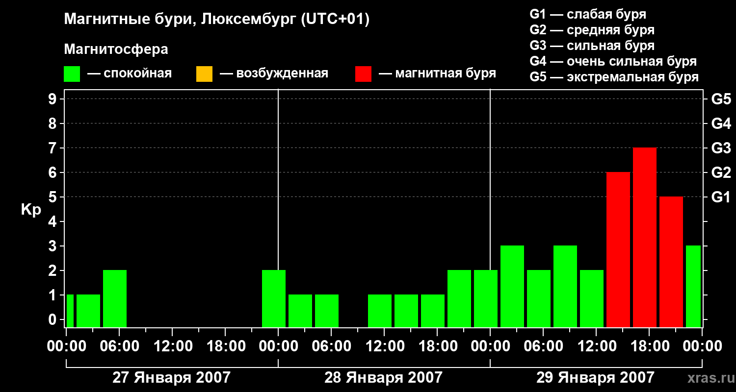 Магнитные бури в Люксембурге — 29 января 2007 года