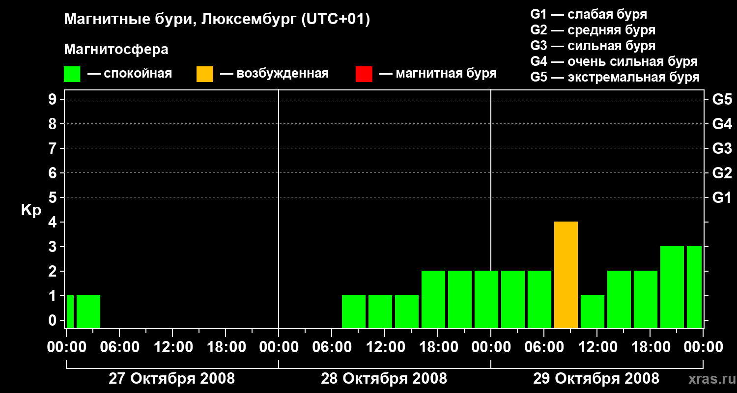 Магнитные бури в Люксембурге — 29 октября 2008 года